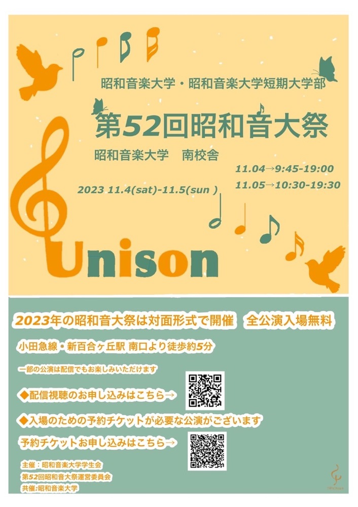 第52回昭和音大祭 SCHEDULE 2023/11/04(土) 12:30 - 昭和音楽大学 4日に12:30から、スタジオブリオにて、 afro concordiaというサークルで出演致します! URLをコピーする 報告する